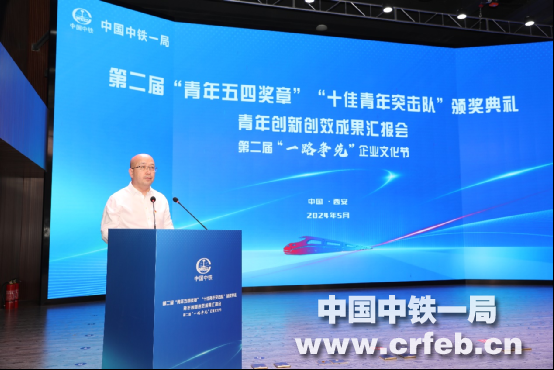 (西安訊)5月20日,中鐵一局第二屆“一路爭先”企業文化節青年創新創效成果匯報會暨第二屆“青年五四獎章”“十佳青年突擊隊”頒獎典禮在古城西安隆重舉行。共青團陜西省委副書記解丹蕊,中國中鐵黨建工作部副部長、團委主持日常工作的副書記樊朝臣,中鐵一局黨委副書記、總經理郗宜君,黨委常委、紀委書記常旭,總工程師吳回獲出席典禮。