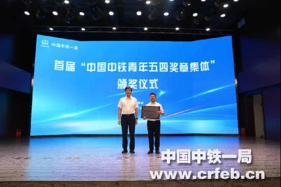 解丹蕊為中鐵一局2023年度五四紅旗團委獲獎單位頒發獎牌