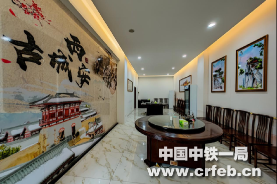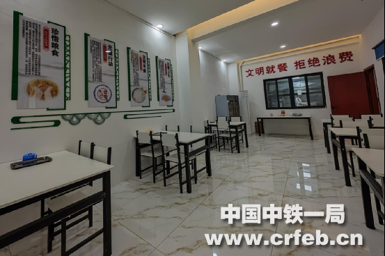走入一樓項目員工生活區(qū),大門右側的小餐廳里,厚重的“古城西安”“雁塔晨鐘”“華岳仙掌”等陜西歷史人文文化,使占到項目部總人數(shù)近50%的秦人有一種“回到家鄉(xiāng)”的親切感;在大餐廳,“注意衛(wèi)生”“文明用餐”“光盤行動”等餐飲文化懸掛墻壁,提醒著員工珍惜糧食,牢記“粒粒皆辛苦”。