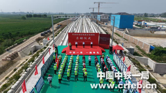 中國鐵路上海局集團有限公司合肥樞紐指揮部指揮長董傳新,安徽省淮北市發改委副主任單增華,中鐵一局黨委副書記、工會主席劉為帛,以及設計、監理、中鐵一局新運公司、二公司相關負責人出席鋪軌儀式。儀式上,主席臺領導為項目黨員先鋒隊、工人先鋒號、青年突擊隊授旗;董傳新下達全線鋪軌啟動令。
