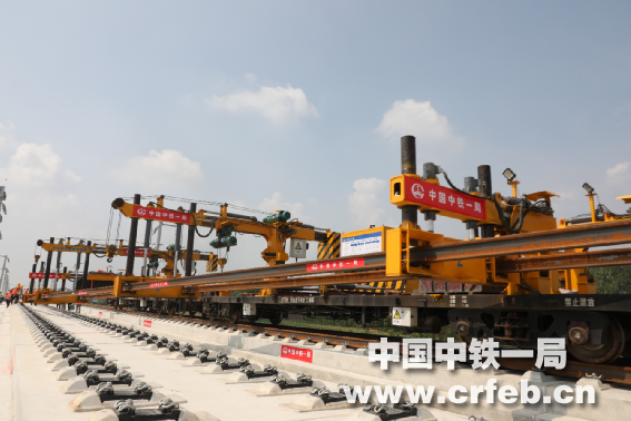 中鐵一局淮宿蚌城際鐵路鋪軌工區負責人楊波介紹,此次鋪軌引進的國內最先進CP500Z本鄰雙線鋪軌機組,具有鋪設速度快、安全性能好、精度高等優勢,可實現單線鋪軌、跨線鋪軌及左右線同時鋪軌,單日最快單線鋪軌進度可達9公里。按計劃,全線鋪軌任務將于今年10月底完成。