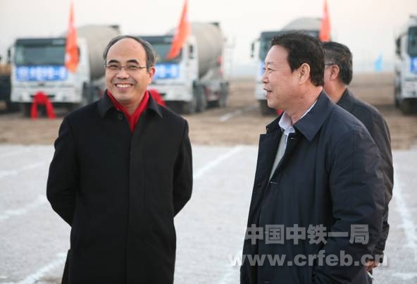 中鐵一局副總經理李冬立、華北經營部總經理曾大慶、二公司總經理許志忠、電務公司黨委書記馬建峰、天津公司總經理李斌、黨委書記魏軍等參加動員會。監理、設計單位相關領導參加動員會。