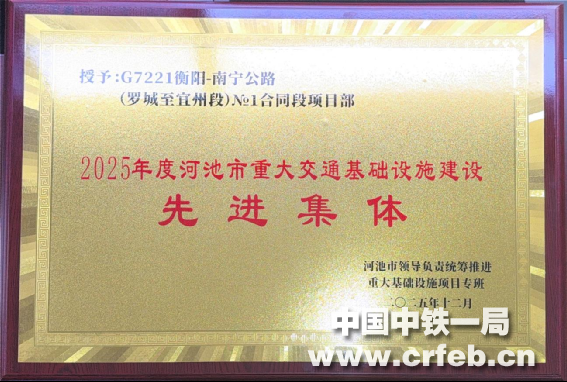 2月3日,2026年廣西河池市交通運輸工作會議在宜州召開。會議通報表揚了2025年度河池市重大交通基礎(chǔ)設(shè)施建設(shè)先進(jìn)集體和先進(jìn)個人,中鐵一局承建的G7221衡陽-南寧公路(羅城至宜州段)№1標(biāo)段項目部榮獲“2025年度河池市重大交通基礎(chǔ)設(shè)施建設(shè)先進(jìn)集體”稱號,項目黨支部書記、負(fù)責(zé)人李軍學(xué)獲評“2025年度河池市重大交通基礎(chǔ)設(shè)施建設(shè)先進(jìn)個人”。