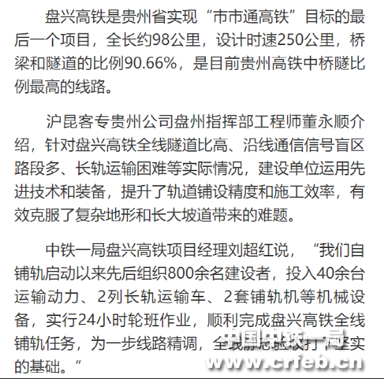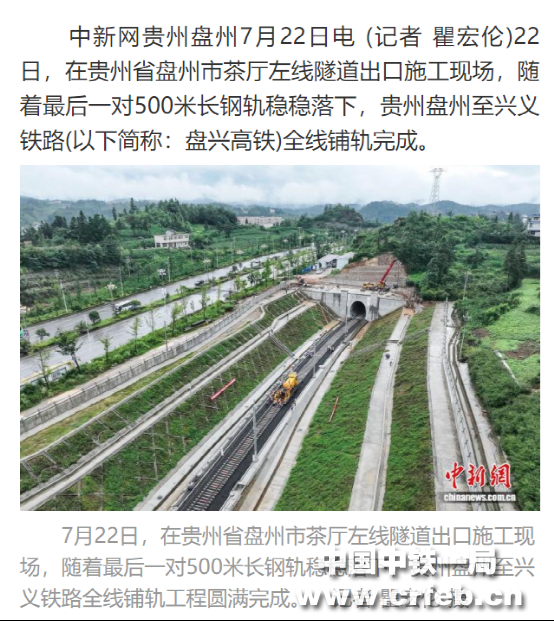 中國新聞網:盤州至興義鐵路全線鋪軌完成