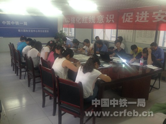 銀川綠地香樹花城項目部觀看安全警示教育片(樊亞榮攝)