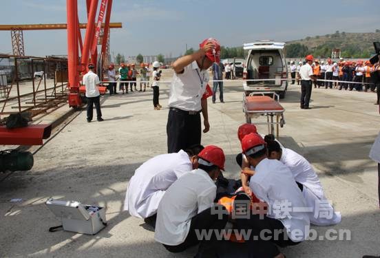 本次“安全生產(chǎn)月”宣傳咨詢?nèi)栈顒又校墓眷o靜鐵路項(xiàng)目部還針對施工中的高空墜落事故風(fēng)險(xiǎn)進(jìn)行了應(yīng)急救援預(yù)案演練。演練設(shè)安全警戒組、醫(yī)療救護(hù)組、綜合協(xié)調(diào)組、物資保障組、事故調(diào)查組,嚴(yán)格按照救援隊(duì)伍、救助車輛、救援物資應(yīng)急保障要求和突發(fā)事件處置預(yù)案組織進(jìn)行,從發(fā)現(xiàn)險(xiǎn)情、報(bào)告報(bào)警、救援救護(hù)、疏導(dǎo)警戒、事故調(diào)查、處理善后,每個(gè)過程都井然有序。大約15分鐘后,通過現(xiàn)場應(yīng)急指揮和各營救小組緊密配合,高空墜落事故應(yīng)急救援演練取得了圓滿成功,充分展示了中鐵一局在事故預(yù)防和救援方面的能力。