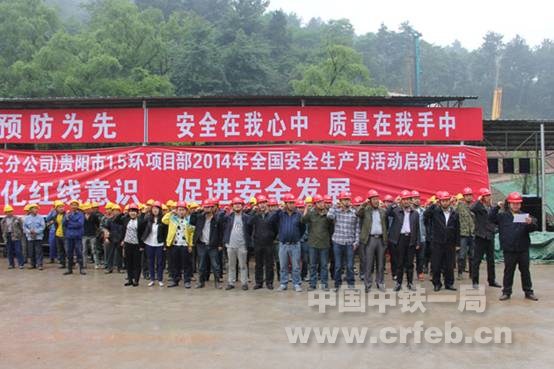 重慶分公司機關在貴陽人員與1.5環項目部員工、農民工一起宣誓(王玉葉攝)