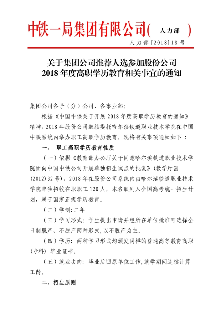 關(guān)于集團(tuán)公司推薦人選參加股份公司2018年度高職學(xué)歷教育相關(guān)事宜的通知