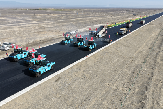2025年9月,項目智能無人攤壓機群技術應用的創新實踐亮相“連霍高速新疆星哈吐段干旱荒漠區智慧低碳改擴建科技示范工程”技術交流暨觀摩會,并得到交通運輸部相關司局、哈密市人民政府、全國29個?。▍^、市)交通運輸主管部門、科研院所及重點交通建設企業代表和專家的一致肯定。