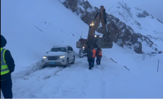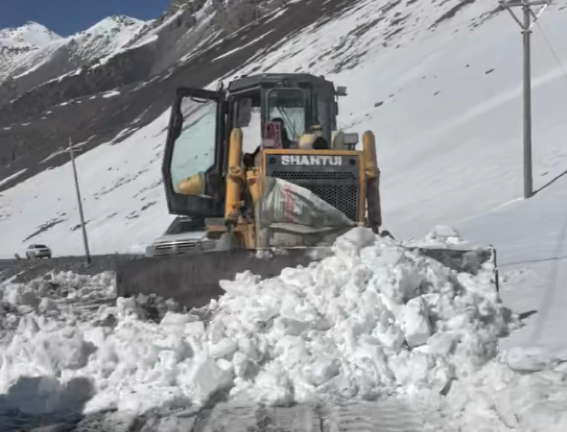 “不行,咱們得上去看看!”項目負責人黨江濤眉頭緊鎖、語氣焦灼,第一時間召集人手,籌備車輛設(shè)備,準備驅(qū)車進山搜救。就在救援隊伍整裝待發(fā)的關(guān)鍵時刻,衛(wèi)星電話突然響起,電話那頭,滕雙睿的聲音裹挾著呼嘯的風雪,急促而沙啞:“黨總!我們被困在達坂爬坡路段了,雪下得太大,車輪陷進雪窩,根本動彈不得,快派裝載機和挖掘機來救援!”