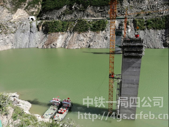 黑水縣自然環(huán)境復(fù)雜多變,強(qiáng)風(fēng)驟雨伴隨著司空見慣的塌方落石,白天平靜的河面經(jīng)過一個晚上水位線便會上漲3-4米,使得地處于深水庫區(qū)的工程有效施工時間壓縮的所剩無幾。在這樣的極端環(huán)境下建黑水河大橋,想過設(shè)計纜索吊施工,但由于一岸就是當(dāng)?shù)氐慕?jīng)濟(jì)命脈國道347線,沒有足夠的工作面,且安全風(fēng)險極大,只得作罷;想過人造浮橋施工,但河水水位上漲下落無法控制只得放棄。經(jīng)過反復(fù)的實(shí)地考察、研討分析后,霍永強(qiáng)回到公司編寫了一個月的施組方案,最終決定用運(yùn)輸船運(yùn)輸混凝土灌注墩身,保障項(xiàng)目整體施工能順利進(jìn)行下去。