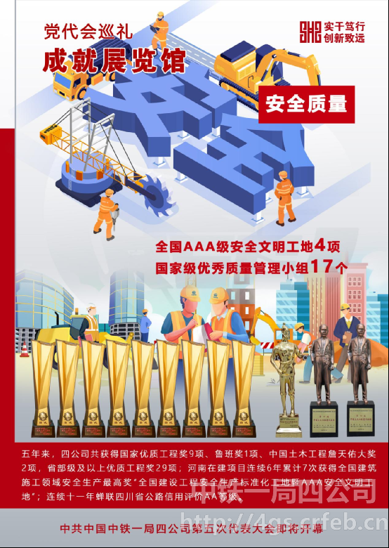 第四次黨代會以來,中鐵一局四公司安全質量工作以質量安全文化為引領,始終堅持以問題為導向,全面落實各級安全質量責任,全面推進“管監(jiān)”責任落實,標本兼治,構建起了較為完善的安全質量管理體系,安全質量工作實現了持續(xù)穩(wěn)定可控,創(chuàng)優(yōu)創(chuàng)譽成績斐然。