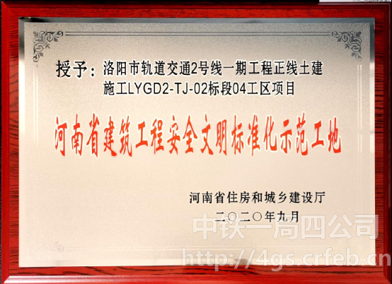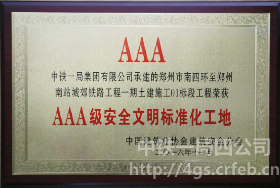 四公司五年來獲得4項全國建筑施工領域安全生產最高獎“全國建設工程安全生產標準化工地暨AAA安全文明工地”的河南省外企業(yè)。