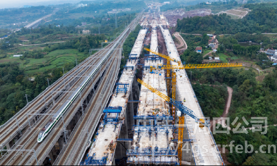 涪陵車站特大橋是渝萬高鐵的核心橋梁集群,由涪陵車站左線特大橋、右線特大橋、代建滬渝蓉高鐵涪陵車站四線特大橋、涪陵北站臺橋左橋、右橋共5座橋梁組成。全長約728米,設計時速350公里,標段現澆梁共計73孔。
