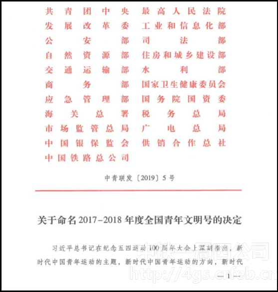 6月20日,根據《關于命名2017-2018年度全國青年文明號的決定》中青聯發[2019]5號,公司大瑞項目部青年突擊隊被命名為“2017-2018年度全國青年文明號”。