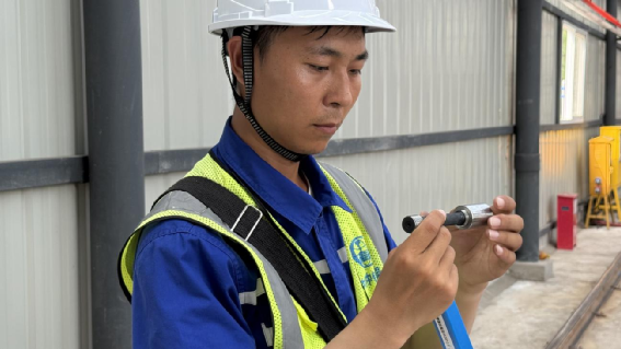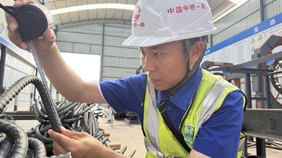 蔡浩正在測(cè)量鋼筋尺寸