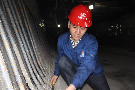 10時許,梁西軍來到右線隧道親自復核隧道二襯鋼筋綁扎間距。
