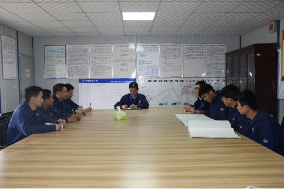 下午5時30分許,梁西軍在項目交班會上聽取各部門提出的問題,并安排部署工作。