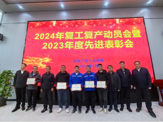 2月29日,中鐵廣投T3總包部召開了2024年復工復產動員會及2023年度先進表彰會,會議表彰了2023年度先進集體和先進個人。中鐵一局白云機場T3項目榮獲2023年度“決戰四季度、決勝保目標‘先進單位’”榮譽稱號,項目副總工梁龍等15名部門員工榮獲“先進個人”榮譽稱號。