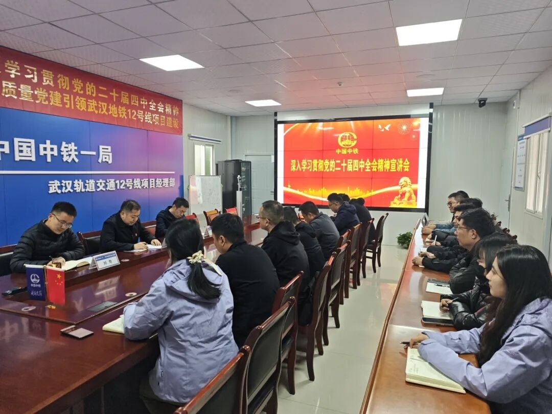 2025年12月31日,中鐵一局副總經理潘小虎到城軌公司武漢地鐵12號線項目宣講黨的二十屆四中全會精神。中鐵一局華中地區指揮部湖北經營部總經理范立波,城軌公司副總經理劉奇以及武漢片區項目黨員代表共30余人參會。