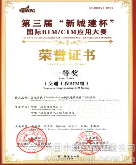 新城建杯榮譽證書
