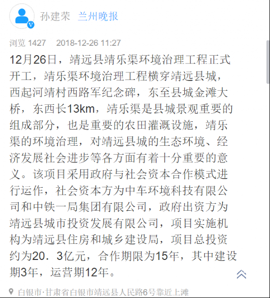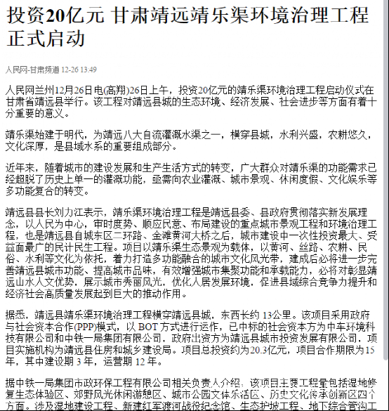 甘肅省各大媒體報道:靖遠縣靖樂渠環境治理項目正式開工