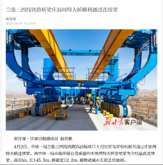 多家媒體報道公司承建的蘭張三四線鐵路項目莊浪河特大橋通過連續梁