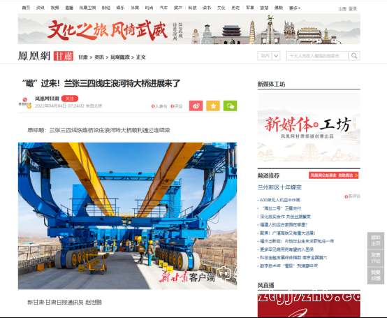 4月3日,人民網報道:甘肅天祝:蘭張三四線鐵路橋梁莊浪河特大橋順利通過連續梁
