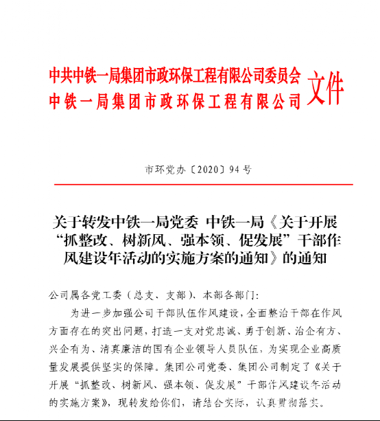 落實集團公司《關于開展“抓整改、樹新風、強本領、促發展”干部作風建設年活動的實施方案的通知》