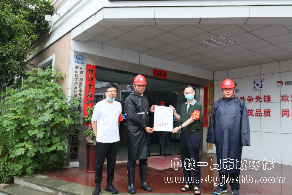 蕭山錢江污水處理廠項(xiàng)目臨時(shí)黨支部向當(dāng)?shù)剡f交“防汛抗臺(tái)請戰(zhàn)書”