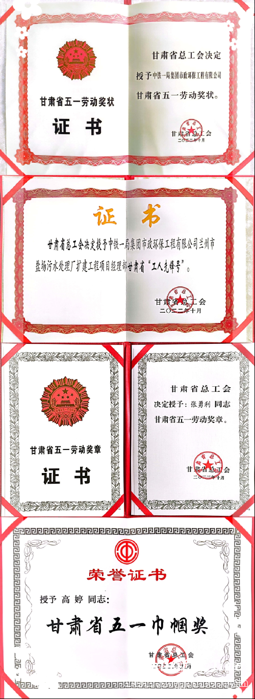 近日,在剛剛頒布的《甘肅省總工會關于表彰2022年甘肅省五一勞動獎和甘肅省工人先鋒號的決定》中,公司榮獲甘肅省“五一勞動獎狀”、所承建蘭州市鹽場污水處理廠擴建工程項目部榮獲“甘肅省工人先鋒號”、職工張勇利榮獲甘肅省“五一勞動獎章”、職工高婷榮獲甘肅省“五一巾幗獎”等多項榮譽。