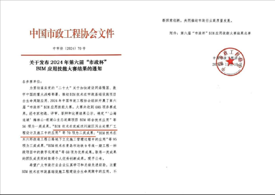 近年來,公司持續加強科技創新工作,在多個項目開展BIM+智慧工地平臺應用探索,積極對接設計院及高校,參與集團公司數智升級示范工程建設,先后獲得省部級BIM+智慧工地示范工程3項,國家行業級BIM大賽5項,省部級BIM大賽10余項,實現了BIM技術為項目創效和為公司創譽的經濟、社會效益雙突破。