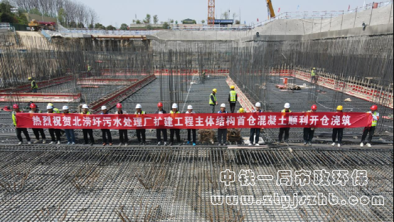 北澇圩污水廠主體結(jié)構(gòu)首倉混凝土澆筑順利完成