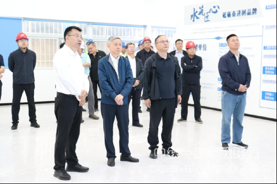 調研組參觀了項目文化展廳并聽取匯報,隨后深入項目施工一線,先后調研十五水廠項目主體結構、塔吊、水池層架體結構等關鍵部位,通過“看、問、查、驗”等方式,詳細了解項目質量管控體系運行、施工工藝標準化落實、原材料質量檢驗等情況。