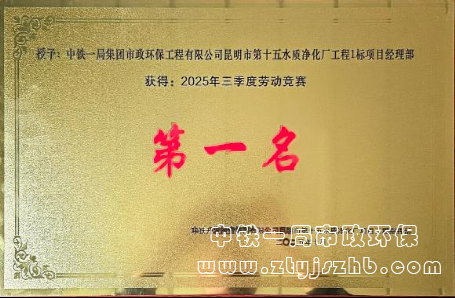 兩連冠!昆明市第十五水質凈化廠再獲中鐵開投2025年季度勞動競賽第一名