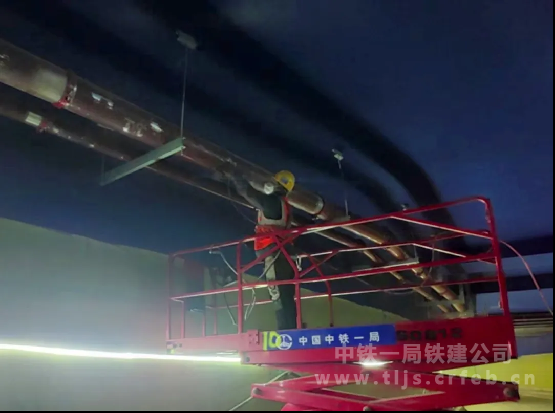 目前,新建道路排水工程穩步推進——180米道路清表、軟弱地基處理及雨水管道溝槽開挖已全部完成,雨水管道安裝累計完成144米;隧道內已安裝的2100米消防管道全部補漆完成,通風管道安裝工程完成380米;12號人行橫通道二襯鋼筋綁扎已全部完成,為后續施工打下堅實基礎。