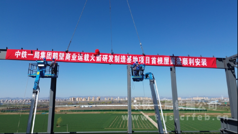 中鐵一局鶴壁市淇濱區商業運載火箭研發制造基地項目首根大型鋼結構主梁成功吊裝