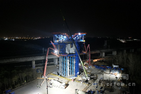中鐵一局滬寧合高鐵跨京滬高鐵立交特大橋轉(zhuǎn)體橋一號塊澆筑成功