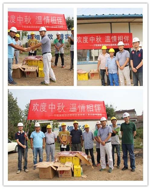 慰問全體職工。9月27日早晨,項目部工會主席李勇利用早點名時間,向全體干部職工傳達(dá)了公司工會對項目的“雙節(jié)”安排及對職工的“雙節(jié)”祝福。隨后李主席為職工發(fā)放了月餅。