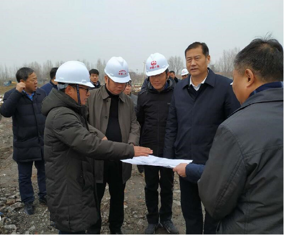 濟(jì)寧市副市長(zhǎng)柳景武(右二)查看施工現(xiàn)場(chǎng)