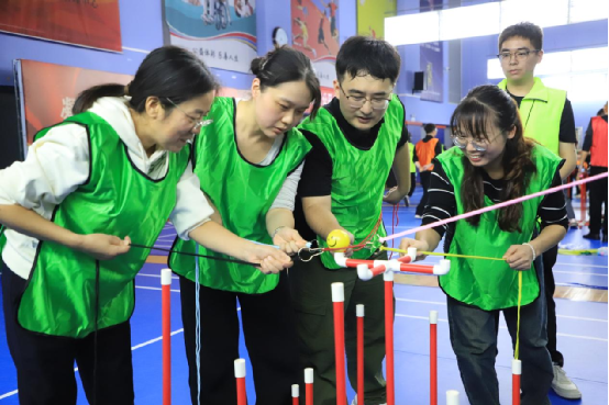 本次趣味運(yùn)動會精心設(shè)置了6個兼具趣味性與協(xié)作性的項(xiàng)目,每個環(huán)節(jié)都暗藏“團(tuán)隊(duì)密碼”?!熬奕四_步”考驗(yàn)隊(duì)員間的節(jié)奏同步,大家綁著綁帶齊聲喊號,一步一步向著終點(diǎn)邁進(jìn),展現(xiàn)出高度的默契;“節(jié)節(jié)高升”中,職工們小心翼翼地搭建道具,在一次次調(diào)整與配合中,體會“積小勝為大勝”的道理;“孤注一擲”環(huán)節(jié),參賽選手瞄準(zhǔn)目標(biāo)全力投擲,現(xiàn)場歡呼聲與喝彩聲此起彼伏;“追求卓越”項(xiàng)目里,大家向著同一目標(biāo)奮力沖刺,用速度與激情詮釋奮斗精神;“精誠攜手”要求隊(duì)員手拉手完成挑戰(zhàn),讓“團(tuán)結(jié)就是力量”的信念深入人心;“同舟共濟(jì)”則模擬團(tuán)隊(duì)面對困境的場景,眾人齊心協(xié)作,共同“渡過難關(guān)”。