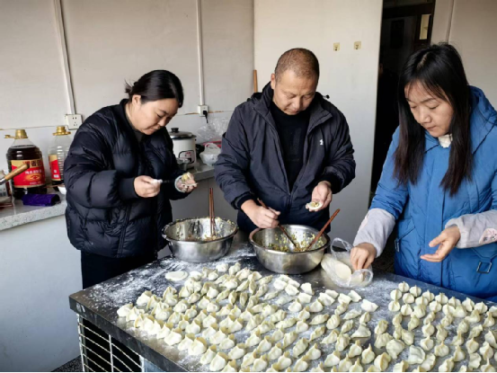 活動現場,職工們熱情高漲、分工協作,和面、搟皮、包餡等工序有條不紊地進行著。大家紛紛亮出拿手絕活,有的手法嫻熟,飛快地捏出一個個飽滿的餃子;有的初次嘗試,在同事的指導下慢慢摸索,現場不時傳來歡聲笑語。一張張薄薄的餃子皮,在大家的巧手下變成了形態各異的餃子,整齊地擺滿桌面,濃濃的餃香與溫馨的氛圍交織在一起。