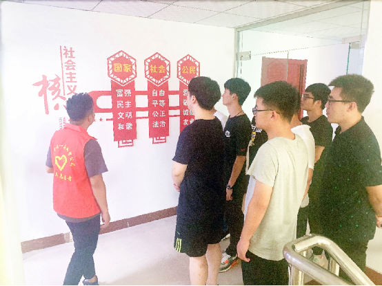 鋼結(jié)構(gòu)運(yùn)營(yíng)中心青年志愿者帶領(lǐng)新員工參觀黨建區(qū)