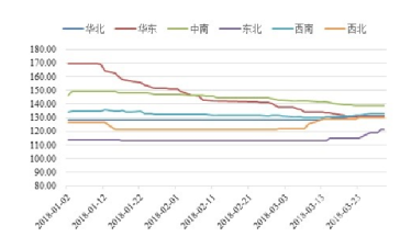 圖3:2018年一季度各區(qū)域水泥價(jià)格指數(shù)