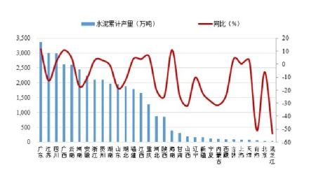 圖6:2018一季度各省市自治區(qū)水泥產(chǎn)量及增速情況