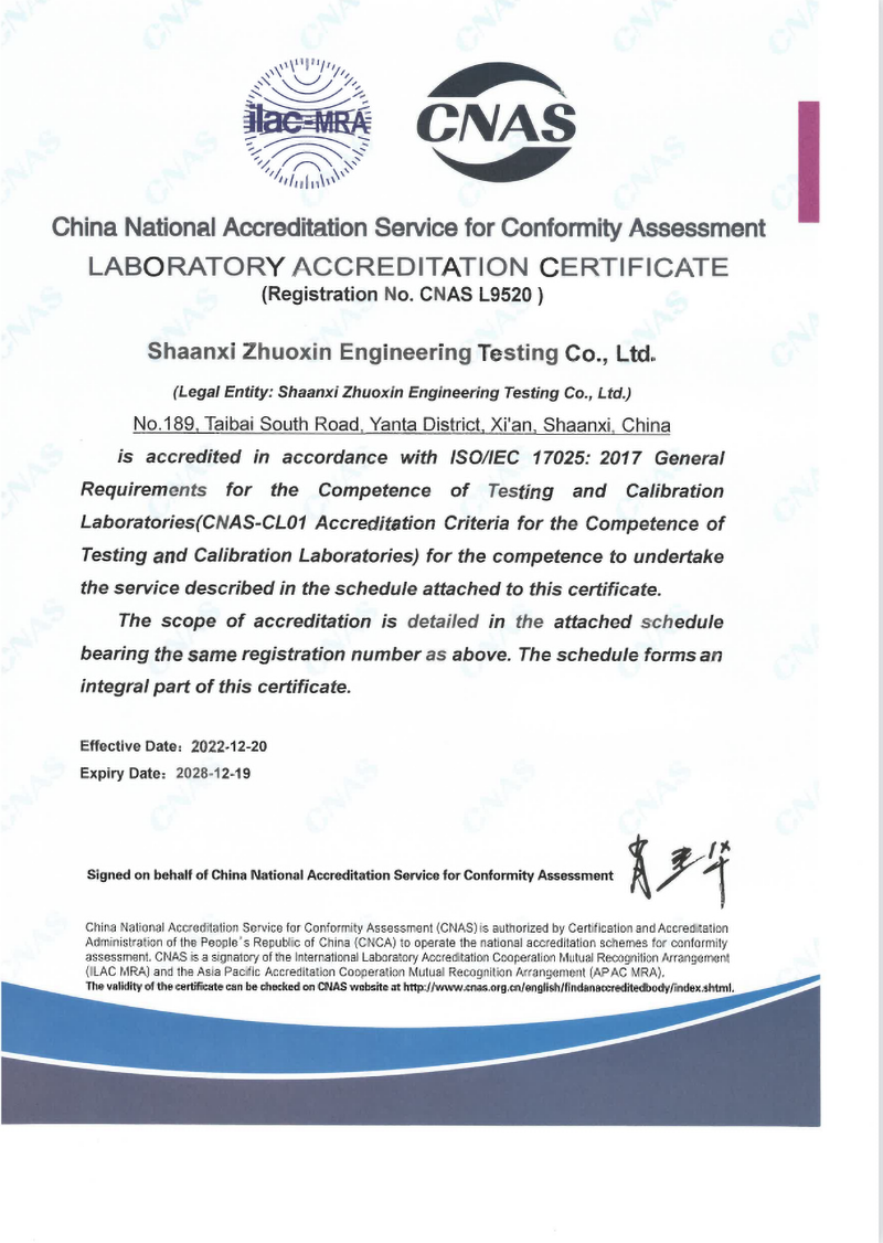 檢測版塊可承擔國外建設(shè)工程水泥、凝土、砂漿類材料、金屬材料及其制品、墻體材料、石材/巖石、土工及無機結(jié)合料穩(wěn)定材料、瀝青及瀝青混合料、道砟、樁基及地基基礎(chǔ)、工程結(jié)構(gòu)等工程質(zhì)量檢測業(yè)務(wù)。